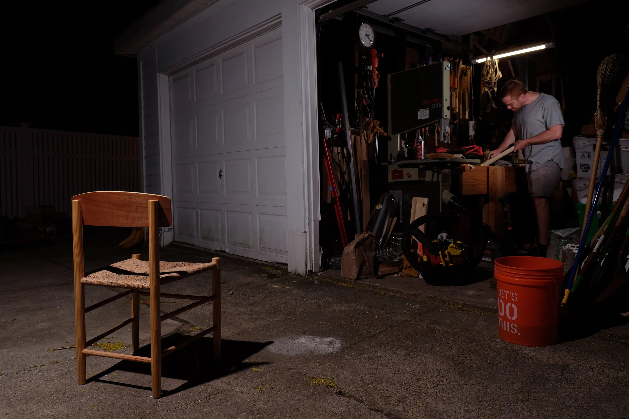 Big Box Vernacular in front of my one car garage shop where it was made. While I have had the good fortune of acquiring a great secondhand bandsaw while living in Rhode Island (as seen in the front of the garage) I did not use it in this chair’s construction, staying true to the limits imposed by the big box.